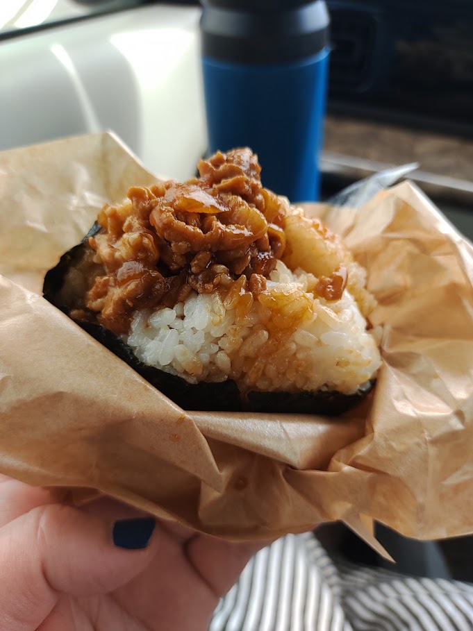 男性や子供さんには一押しのスパムのおむすび。スパムと同量くらいのチーズが挟まっているのではないだろうか…(;'∀') ジャンクだけどやっぱりこういうのが一番おいしい。